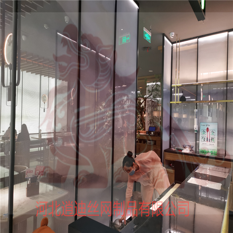 南京一個(gè)品牌連鎖飯店用的微孔沖孔板,整體裝修風(fēng)格為中式,由于孔小從外往里看給人朦朧的高檔感覺,設(shè)計(jì)非常巧妙
