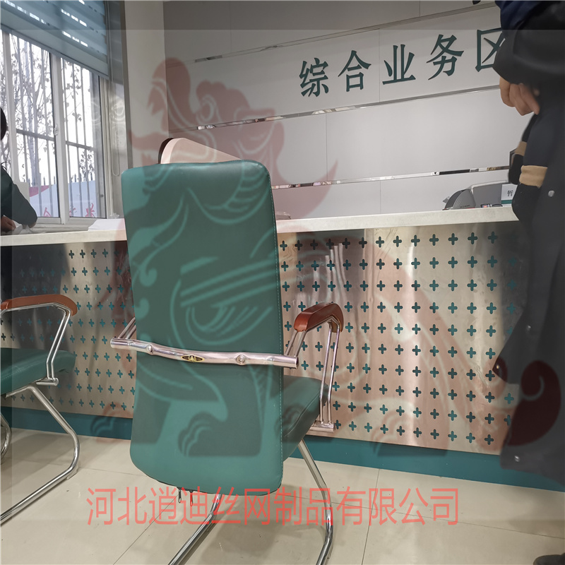 前臺桌用拉絲十字沖孔網(wǎng)的效果,我廠供應(yīng)電網(wǎng)一批拉絲十字沖孔網(wǎng),再由裝修工安裝成成品
