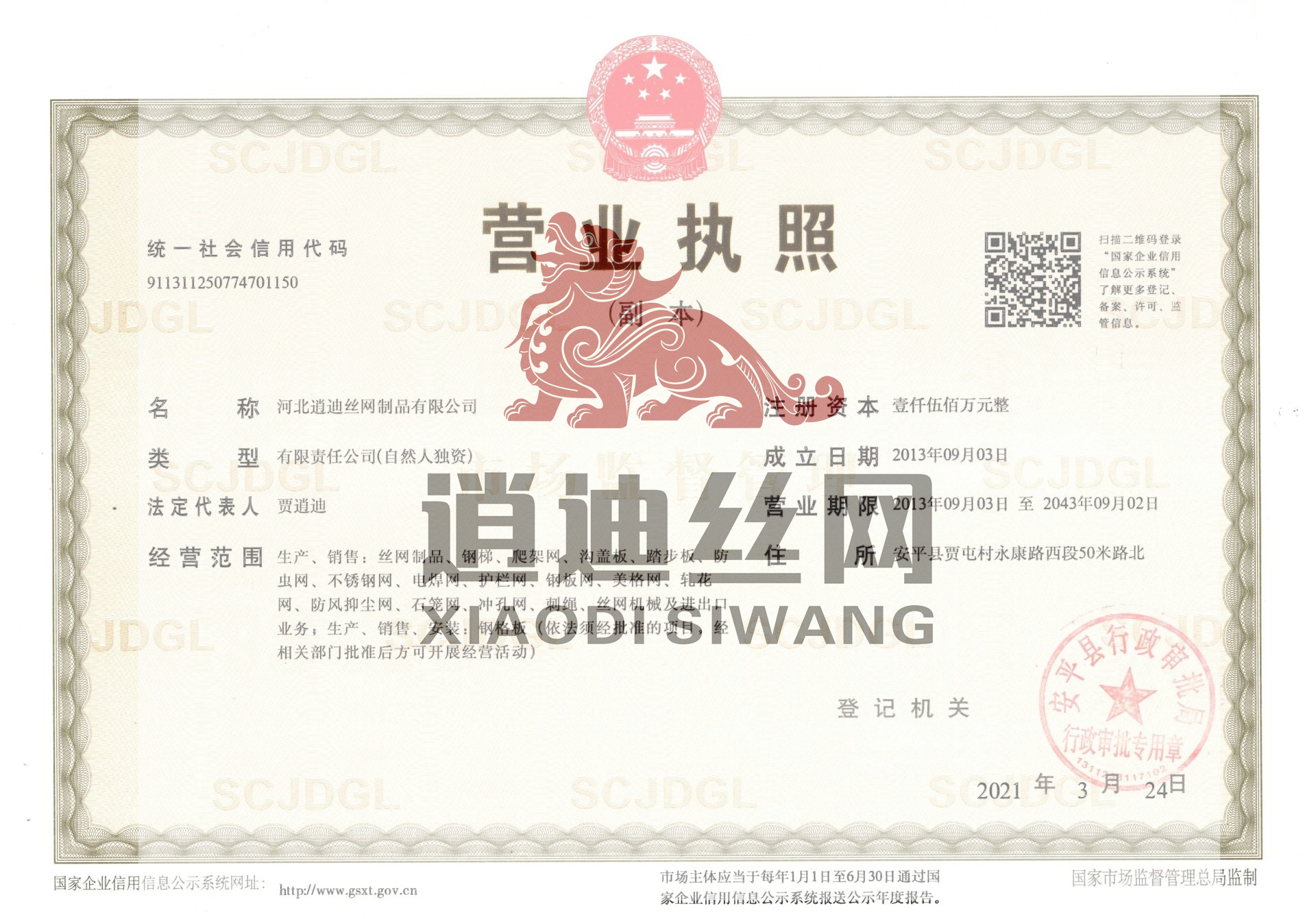 河北逍迪絲網(wǎng)制品有限公司-營業(yè)執(zhí)照